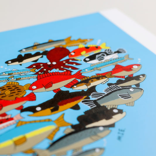 売り切れ絵画(複製):田中翠恵「寺泊の魚たち」